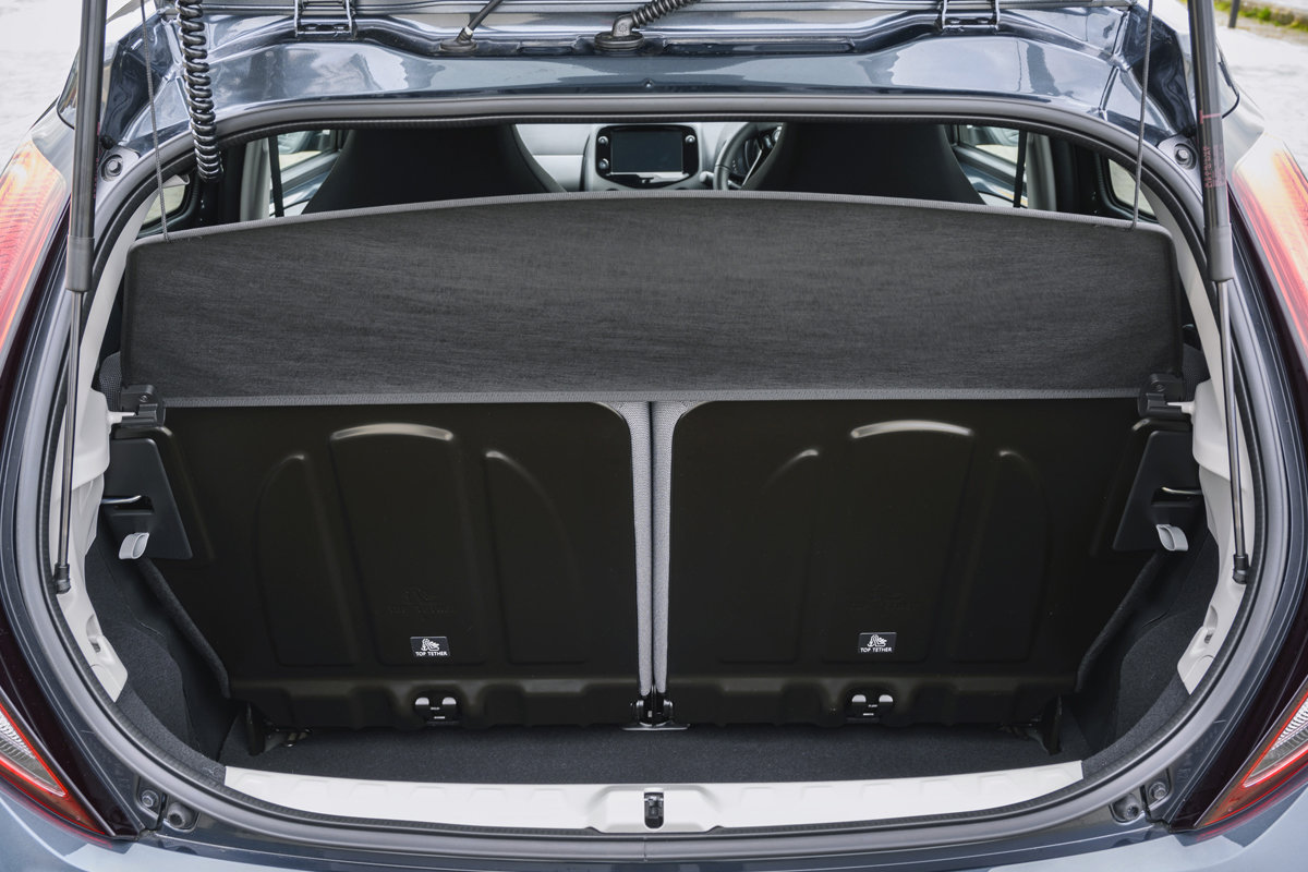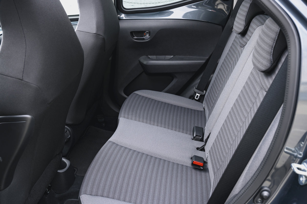 Inside, you’ll find a decent amount of space up front, but in the rear seats, things are unsurprisingly a little more cramped. Also note that this is a strict four seater: you can fit two people in the back of an Aygo, but there's no third seatbelt.