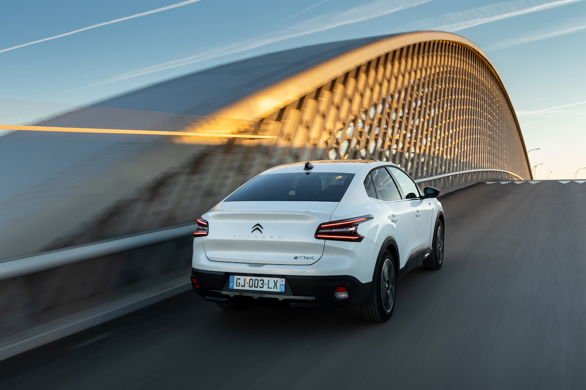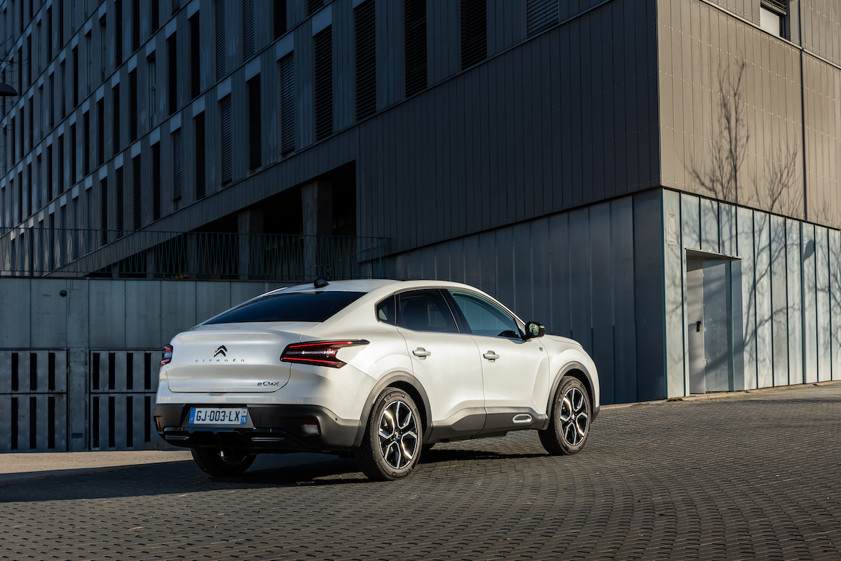 Look at the e-C4 X from the front, and you’ll see the raised ride height and visual chunkiness of an SUV, traits it shares with the regular C4 SUV with which it shares its CMP platform and much of its componentry. Look at it from the side and rear, though, and you’ll notice a shape that also brings in the swoopy roofline of a coupe, and there’s also a bit of four-door saloon car in there.