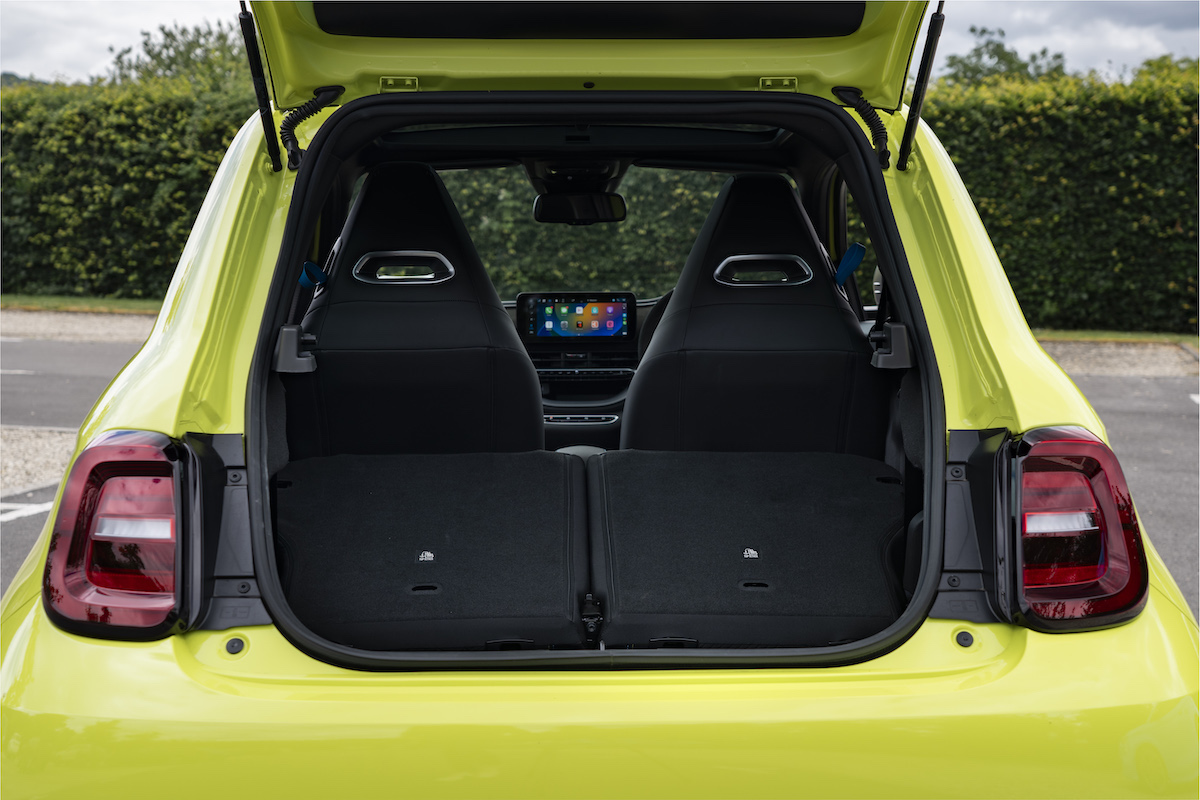 Not very, to be honest. Whether you go for the hatchback or the Abarth 500e Cabrio, you only get 185 litres of boot space. The Cabrio is also compromised by its smaller boot opening, which is revealed when you pop the top-hinged boot lid and flip it up.