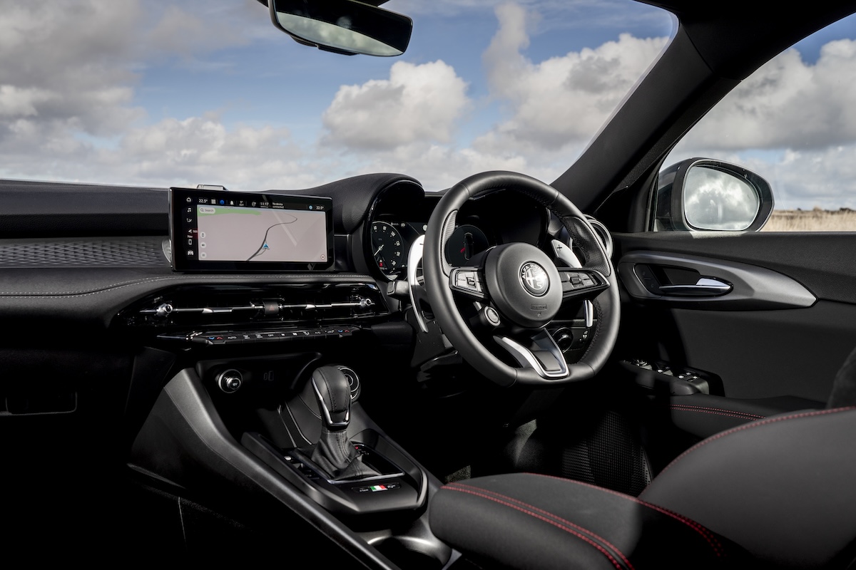Up front, it’s a really comfortable and classy space, with electric seat adjustment and a dashboard design that features straightforward air-con switches (praise be!), a dashboard architecture that’s slightly canted towards the driver, a domed driver’s binnacle and a raised centre console that also emphasises the sporty, driver-focussed ‘cockpit’ feel. Added to the lovely, slim steering wheel, subtle trim inserts and neat touches including an Italian flag set around the gearshifter, it all feels smart and there's a reasonable air of premium quality to it. Look closely, however, and there are a few scratchy, brittle-feeling plastics around, something that isn't the case in, say, a BMW X1 or a Volvo XC40.