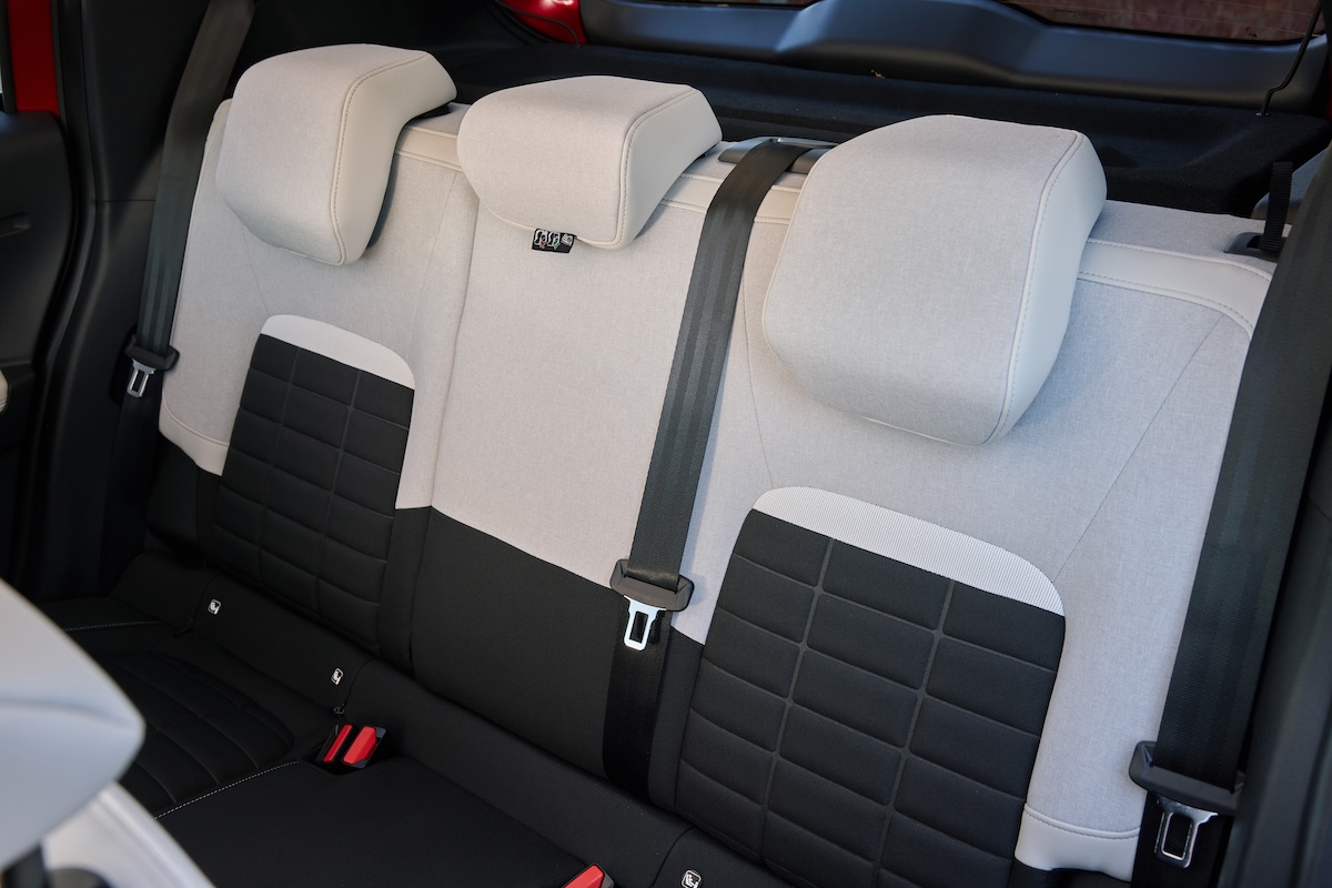 Not only that, but the e-C3 has more rear leg- and headroom than most of its rivals, so you’ll get a couple of adults in the back seats with no problem at all, even if they’re sat behind a taller driver. Their knees might touch the seats in front, but they won't be pressing into them uncomfortably. You get charging ports and pockets for smart phones, plus two pairs of Isofix fittings back there, too. There’s no centre rear armrest, though, and getting in and out of the rear seats is made tricky by narrow door openings, made even narrower by a protruding piece of bodywork in the door frame next to the rear-seat backrest. Squeezing past it and through the door opening is a real chore, even for more dextrous passengers, and those with limited mobility - such as the elderly - might struggle to get in at all.