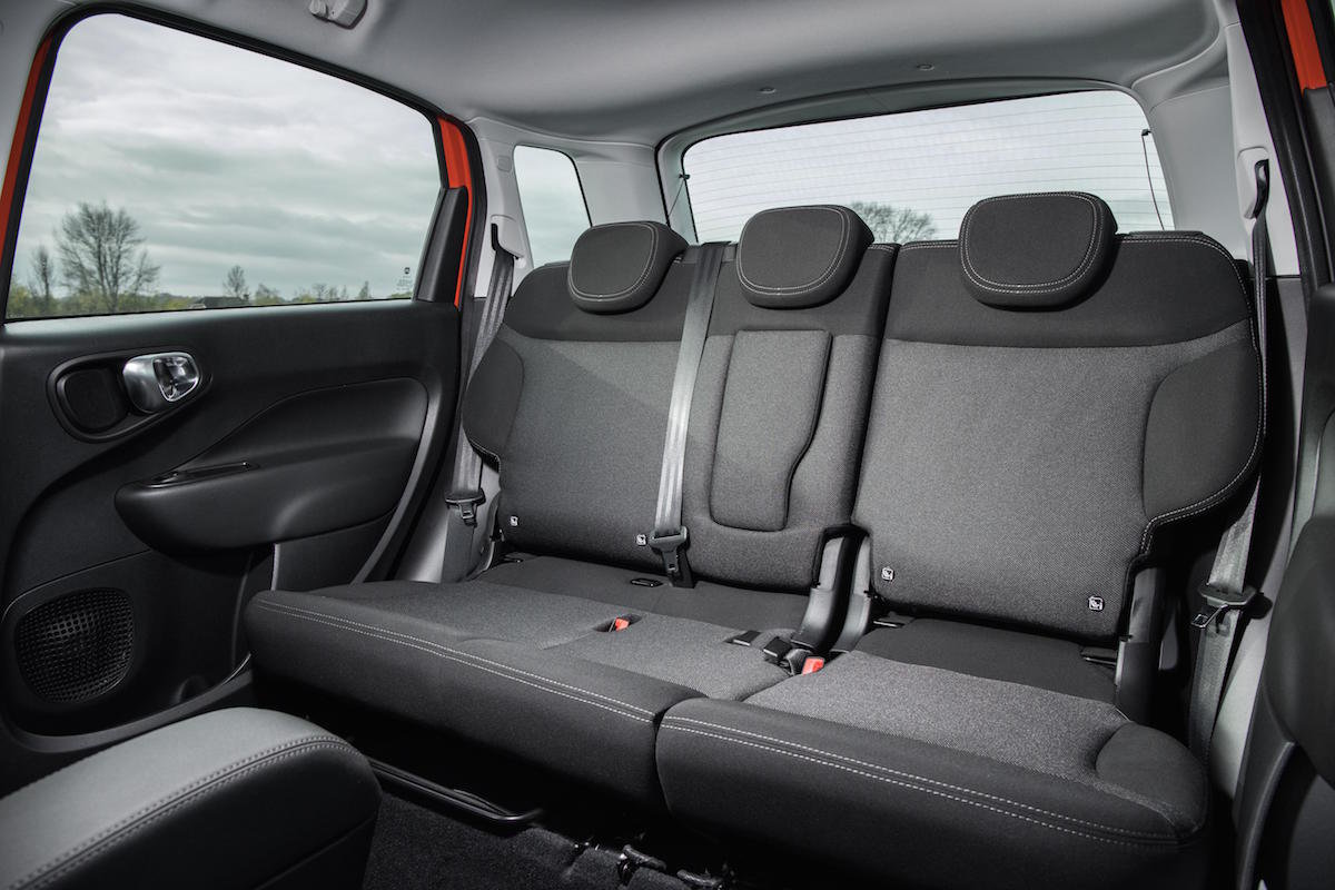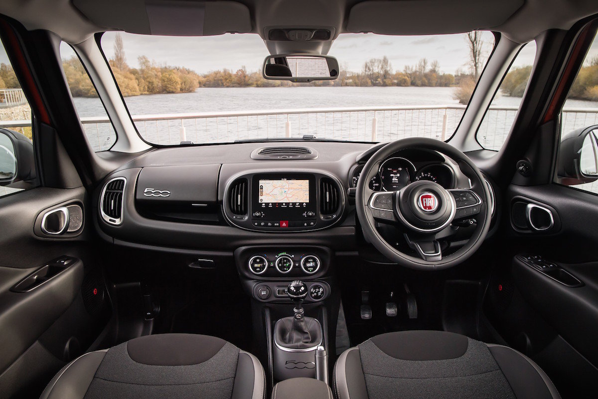 Aesthetic influences aside, because the 500L is effectively a glorified delivery van with seats, it provides a surprising amount of interior space. Although the cabin is quite narrow, it is also quite upright, so there’s plenty of headroom and legroom in the front seats and its large side windows make the cabin seem even airier. The dash is pretty cheery, too, with many models featuring a combination of body-coloured plastics with chunky switches and dials. Depending on your point of view, you’ll either see the cabin’s basic, scuff-resistant plastics as cheap and nasty, or just the job for all those wipe-clean episodes heading your way.