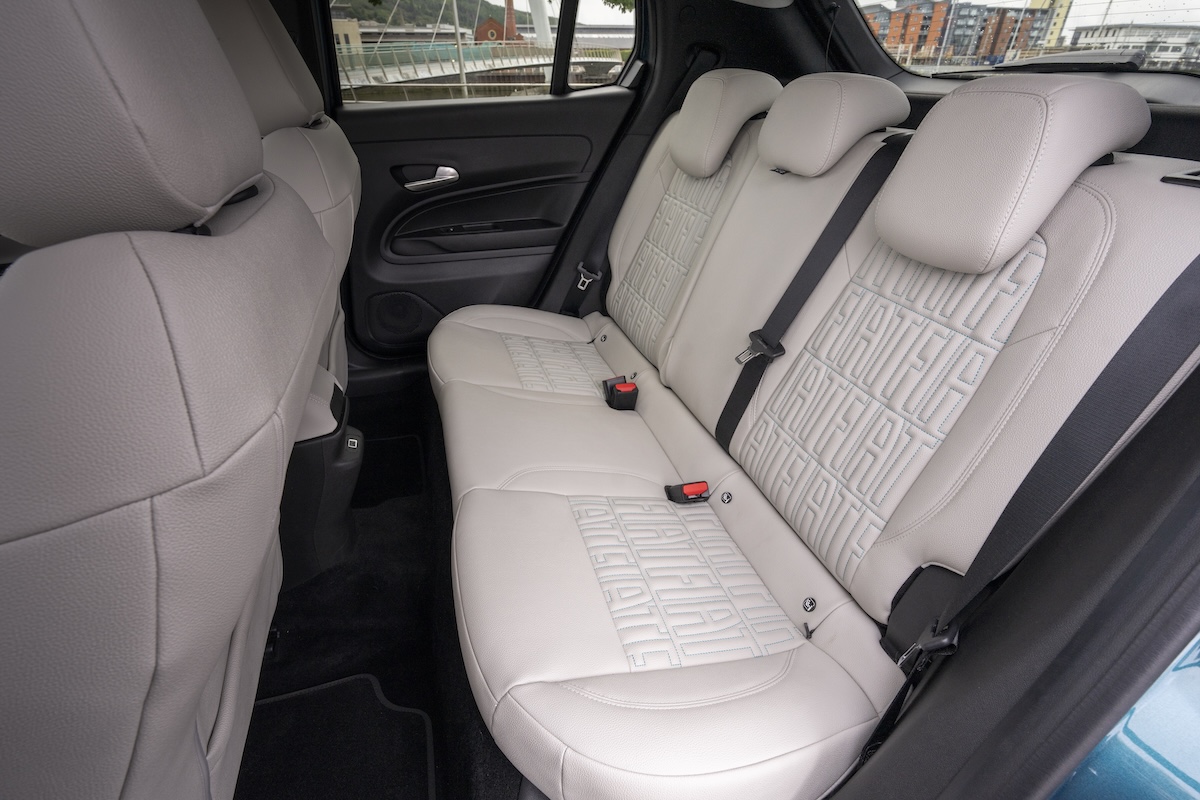 The driving position is good, with enough adjustment for most to get comfortable. You even get electric adjustment and massage function as standard for the driver’s seat in the Fiat 600e La Prima trim, and the leatherette upholstery with contrasting Fiat logos stitched into them look really cool.