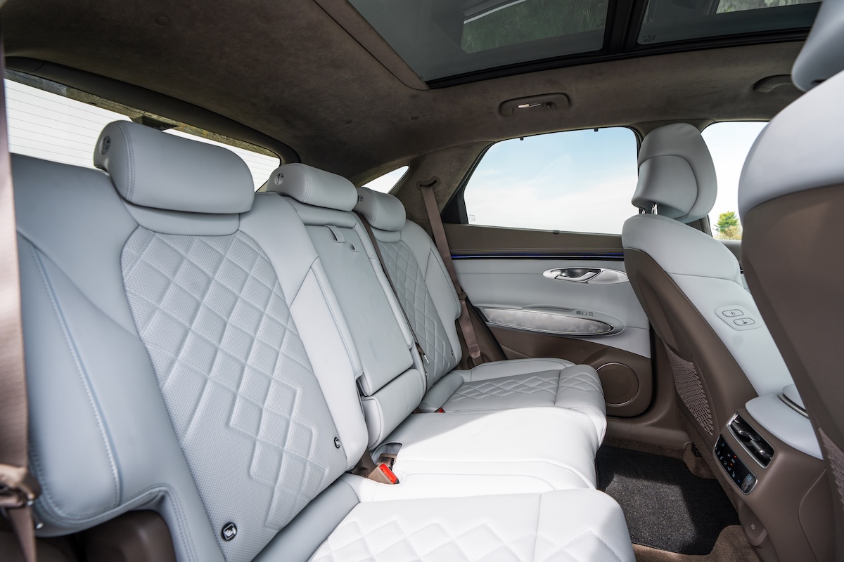 Again, the Genesis trails the class leaders when it comes to carrying capacity, with a decent but not cavernous 542 litres of boot space (503 litres in the Electrified GV70). What’s more, the shape of the load area itself isn’t the best, due to some intrusion from the wheel arches and a sloping coupe-like roofline. Still, lower the 40/20/40 split-fold rear seat and the available space increases to an estate car-like 1,678 litres.