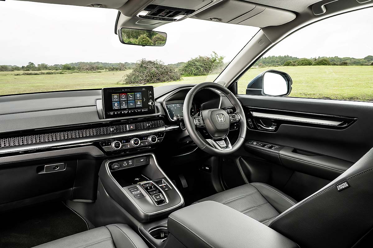 - The sixth-generation CR-V is the first Honda available in Europe with the company’s Sensing 360 safety system, which uses technology to eliminate blind spots around the vehicle. Indicate left, for example, and the central infotainment displays a live feed from a camera mounted on the door mirror (similar to the system you’ll find in a higher specification Kia Sportage). Equally, pull up to a junction and the car will monitor for traffic that’s about to cross your path and warn you if it thinks a collision is imminent. It is worth noting that, while undoubtedly useful in certain situations, these systems do generate a fair number of false warnings in the form of various beeps and bongs. And while it is possible to disable some of them, they automatically reset when the car is switched off. We’d recommend trying a car with all of these systems before you buy. That way you’ll know whether you find them a help or an infuriating hindrance.