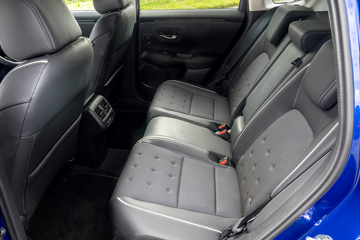 Despite its shorter wheelbase, the ZR-V’s back seats are even roomier than the Civic’s. Rear legroom feels just as generous – in other words, very – but while taller passengers can feel a fraction hemmed in in the Civic, headroom in the ZR-V is more plentiful. Thankfully, there’s no attempt at a sloping coupe-like roofline here. The middle seat of the three is rather narrow and firm, though, so the ZR-V is better suited to carrying four adults than five, even if the flat floor means there’s no transmission tunnel eating into foot space.