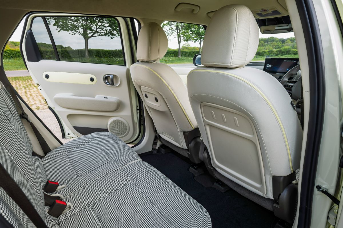 Despite its dinky size, the Inster is a masterclass in clever packaging in the context of its class and direct rivals. It seats four people, which some buyers may consider a bit limiting given that a Renault 5 and Citroen e-C3 will seat five, but if you go for the Inster 02 model then it makes up for that with sliding and fold-flat rear seats. In fact, even the front seats fold flat, so that you can turn the Inster into a tiny van, or get your surfboard in.