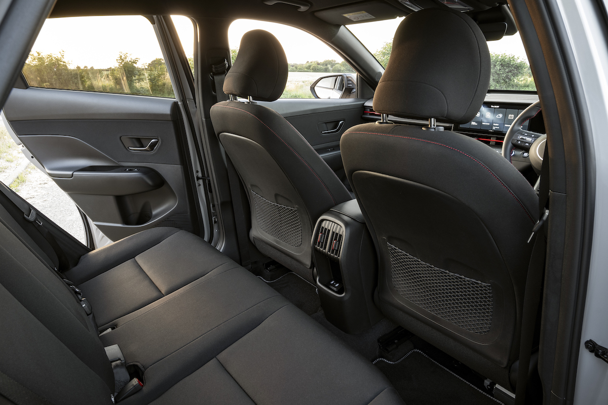 The first-generation Kona was a bit short on boot space and rear-seat passenger space, and customers weren’t shy about telling Hyundai so. Happily, the brand listened, and in an effort to address those issues, the Kona has grown by 14 centimetres in overall length, and 6cm in its wheelbase (the space between the front and rear axles). Thankfully, this supersizing effort has been successful. Lifting up the hatchback tailgate reveals a very roomy cargo space of 466 litres, regardless of which of the powertrains you choose, and the space is a useful square shape as well.