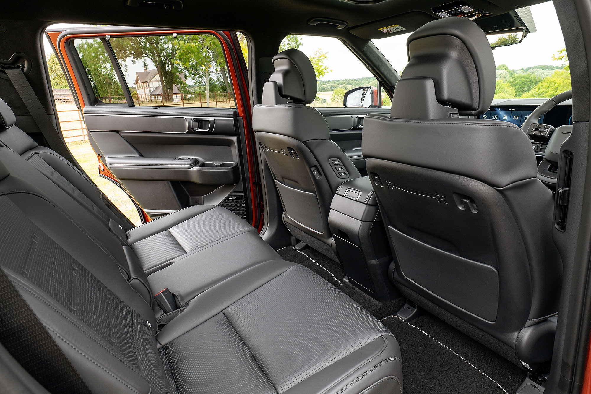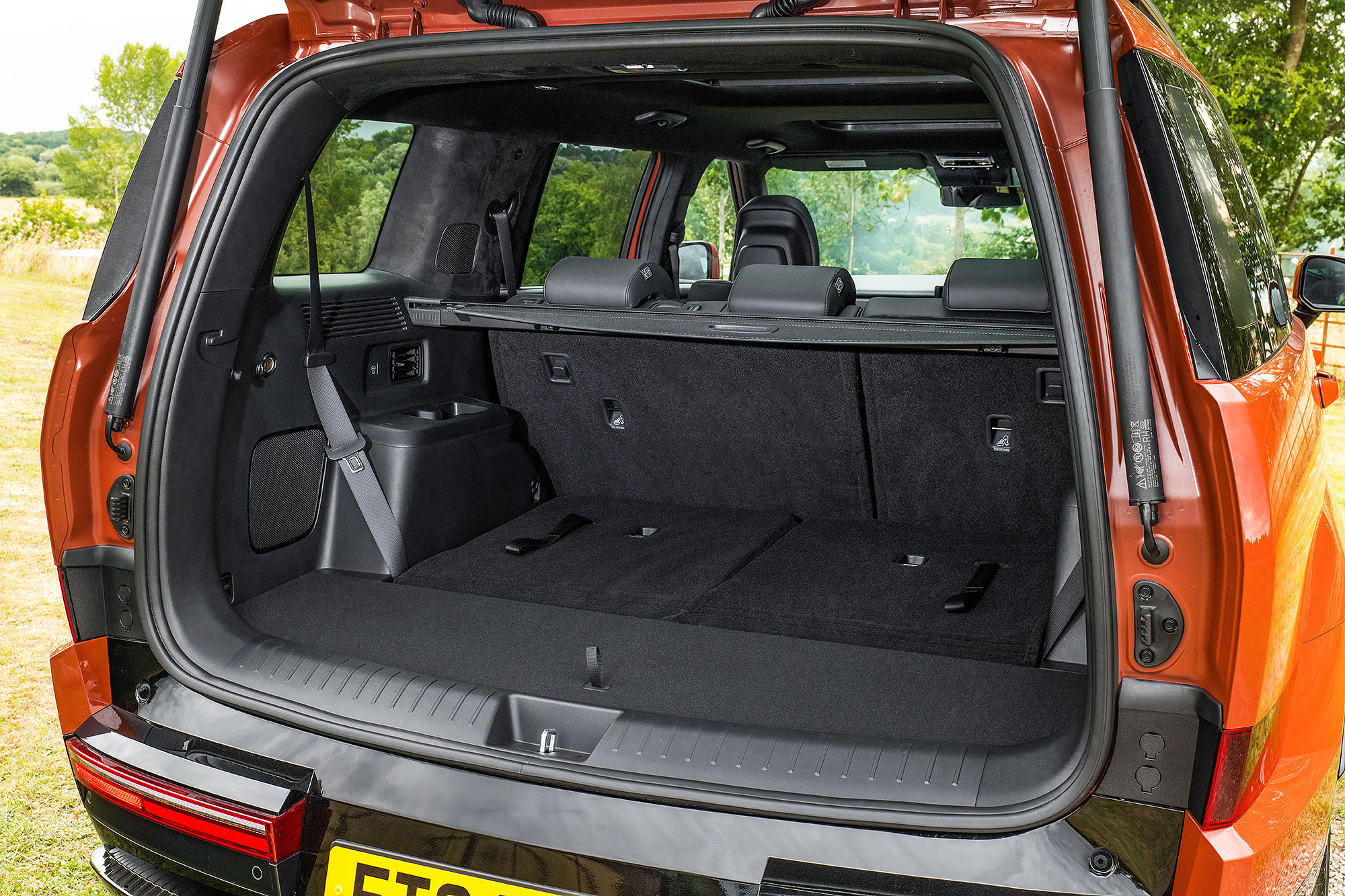 Still, if you’re not worried about that, you can enjoy a seriously cool cabin up front. There are definite Defender 130 vibes in the straight, bluff dashboard architecture and hard-wearing materials, while the high-set driving position gives an appropriately commanding view down the road. There are loads of cubbies and a double glovebox, plus an excellent curved touchscreen. It really does feel classy, and is robust enough to stand up well to a hard life in the countryside: quite a tricky balance to strike.