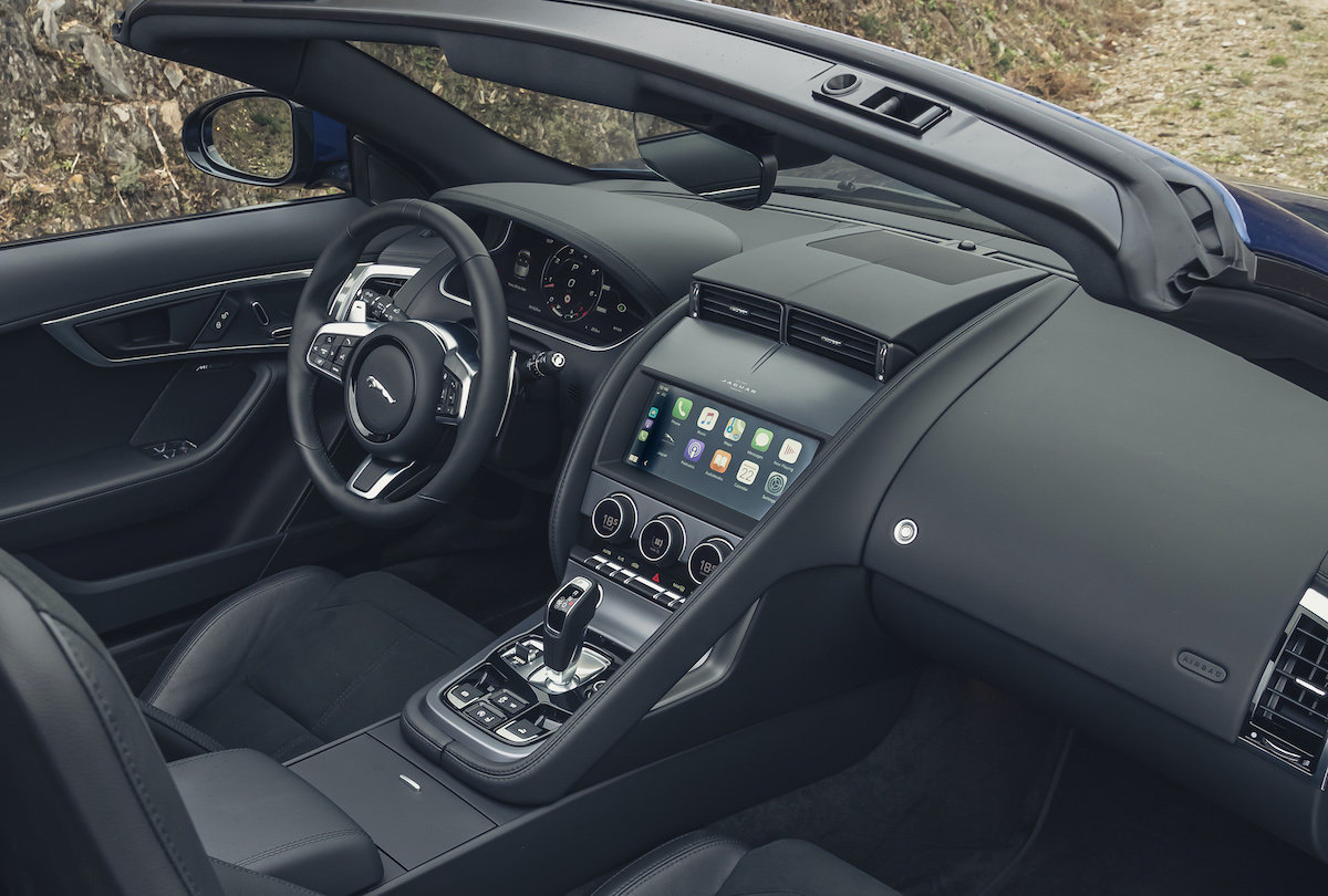 The F-Type is offered in three different trim levels, all of which are generously specified. Even the standard version comes with electrically adjustable sports seats with a leather and suede finish, LED headlights, climate control, and a Meridian sound system including Apple CarPlay and Android Auto.