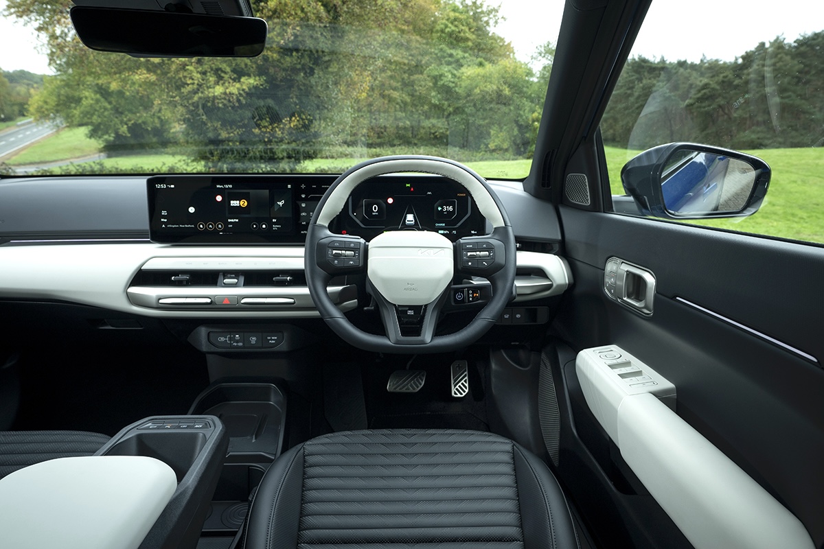 Up front, the interior has lots in common with that of Kia’s EV3 SUV. And that’s no bad thing, because it means the whole thing looks great and feels brilliantly screwed together. It also means there are lots of cubbies for you to stash away your odds and ends.