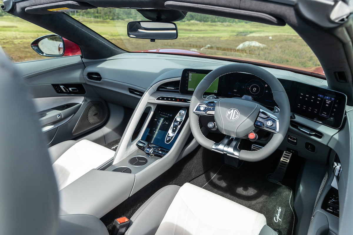 - Part of MG’s schtick is that the company makes the buying decision very easy, and that continues with the Cyberster. You simply choose whether you want the Trophy or the GT, choose your paint colour (one of five), the colour of your fabric roof (black or red), and your interior colour scheme (grey or black and red). Other than that, no optional extras are offered.
