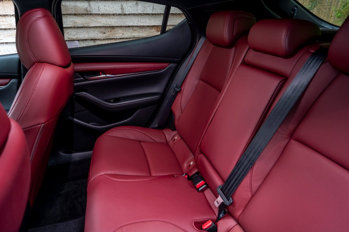 The rising waistline, the big rear pillar, and the low roof mean it can feel dark and claustrophobic for rear-seat passengers. There are two sets of Isofix mounting points, one for each outer seat, but larger child seats come close to reaching the roof, because it slopes steeply as it drops to meet the tailgate. If you need to use high-backed booster seats – especially for children between the ages of about seven and 11 – then check that the Mazda can handle them.