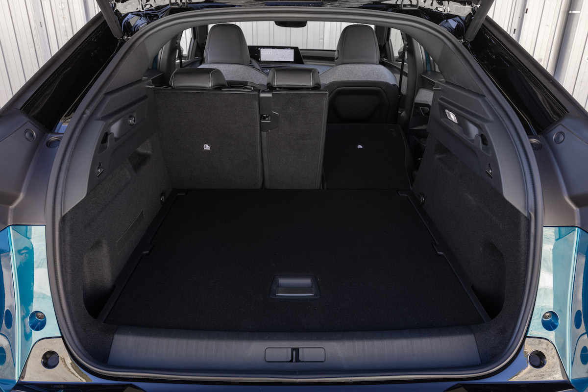 At just over 4.5-metres long, the Peugeot e-3008 is a touch shorter than some of its closest rivals, yet it’s very spacious inside. A 520-litre boot (470 litres in the Dual Motor all-wheel-drive variant) gets you a broad, long boot floor that you can lift up to reveal a deep underfloor storage area that’ll be useful for storing cables. It’s not the deepest boot, as that rakish roofline does cut into boot space, which could be a problem for really bulky items.