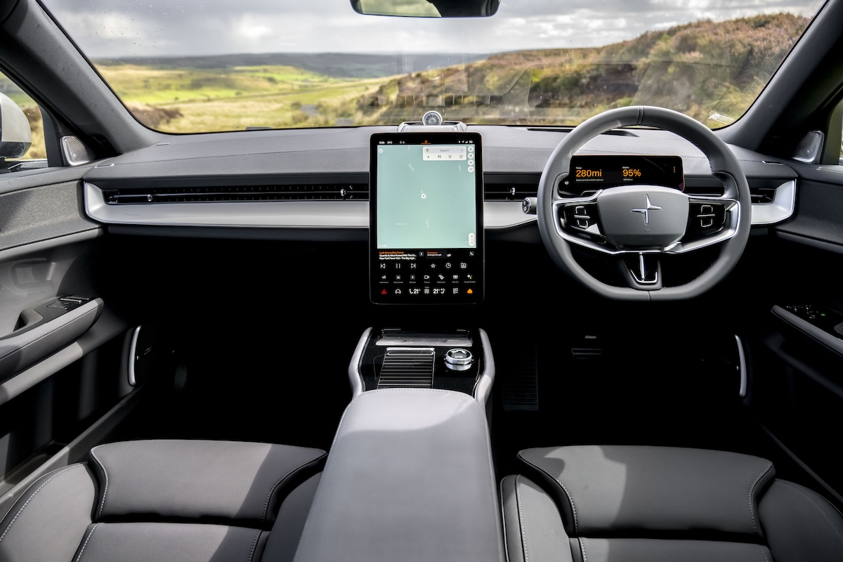 Polestar quotes an AC charging time of 11 hours, but that’s based on an 11kW hookup, and the vast majority of UK homes don’t have the three-phase electrics needed to make that speed possible. Your average domestic electric car wallbox charger usually has a 7.4kW connection, so that same 0-100% charge is likely to take somewhere in the region of 18-19 hours.