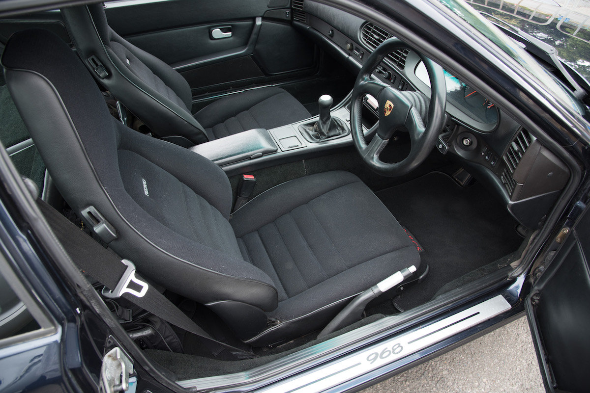 Introduced in 1993, the coupe-only 968 Club Sport is a lightweight version of the car – it lacks electric windows, central locking, radio, aircon, electric hatch release, and even the rear seats – designed for use on the race track. With its circuit-tuned suspension and hardcore Recaro sports seats the 968 Club Sport was much admired by the motoring press when new, but wasn’t so quick out of the showroom. This encouraged Porsche to launch the UK-market-only 968 Sport in 1994, with many of the creature comforts put back in. Both have since become sports car icons, with prices to match.