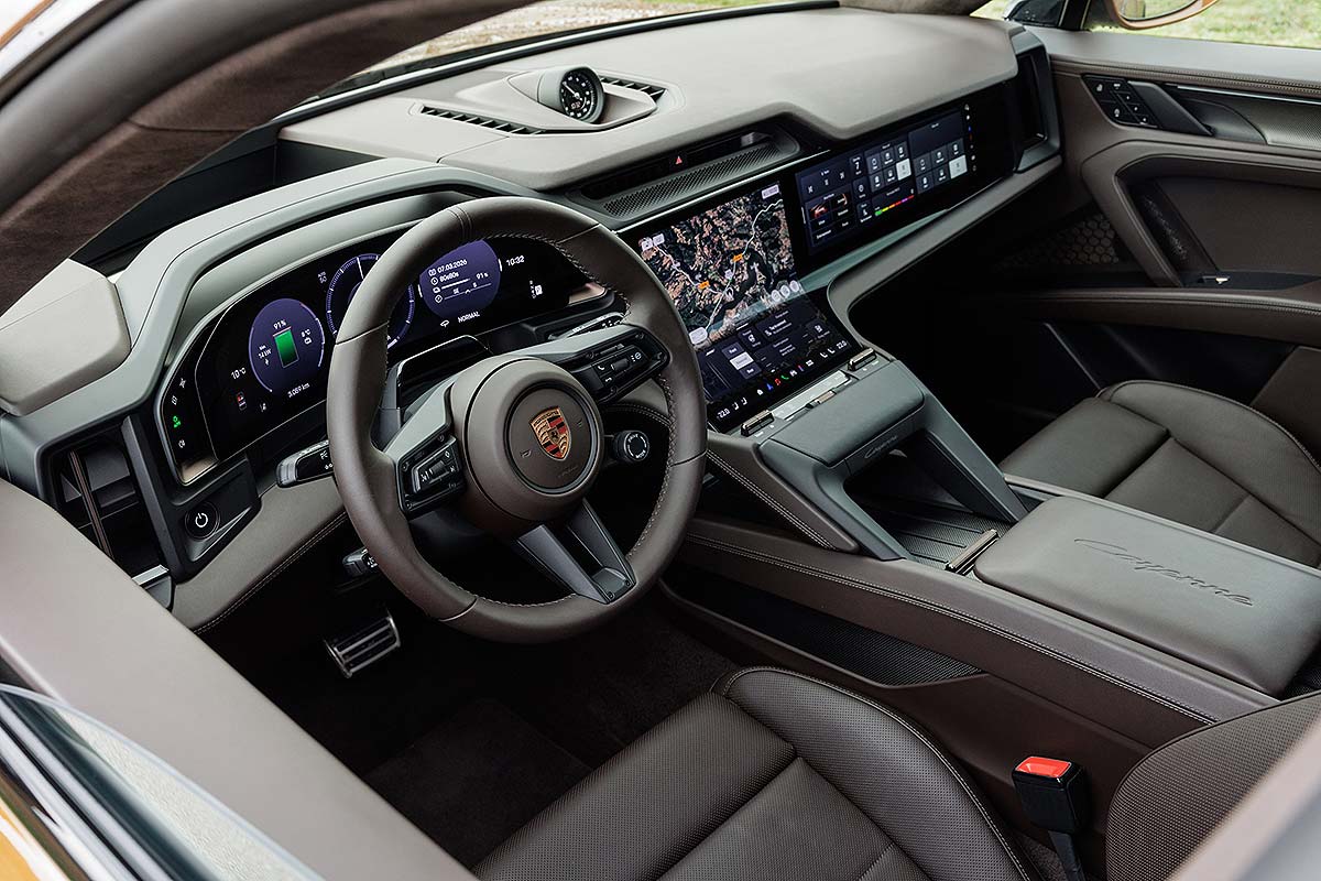 Those numbers? How about up to 1,140bhp from the Turbo, with overboost and launch control engaged. That makes for the most powerful Porsche production car ever – one that blasts to 62mph in just 2.5 seconds, exactly matching the mighty new Porsche 911 Turbo S. If you don’t use all the performance, though, battery range will also impress. The regular 435bhp Cayenne Electric can travel up to 399 miles between charges.