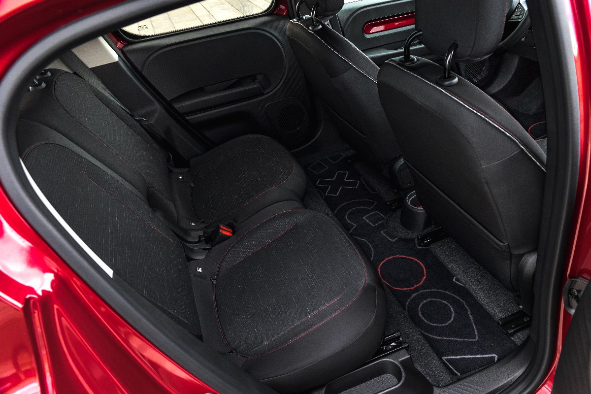 The Renault Twingo is a five-door hatchback, which immediately makes it much more practical than the three-door Fiat 500e. The rear seats in the Twingo slide for-and-aft by 17cm, and while you won’t have much legroom at all if you slide them forwards, being able to prioritise luggage or passengers is always a handy choice to be able to make.