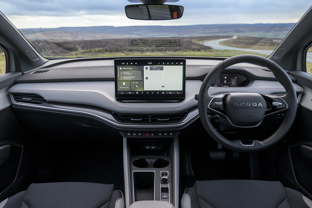 Inside, the Elroq is dominated by a vast Tesla-style 13-inch touchscreen that gives you access to most of the physical controls. As with most current Volkswagen Group cars, you have to use this to adjust the climate control, too, which can be distracting on the move.