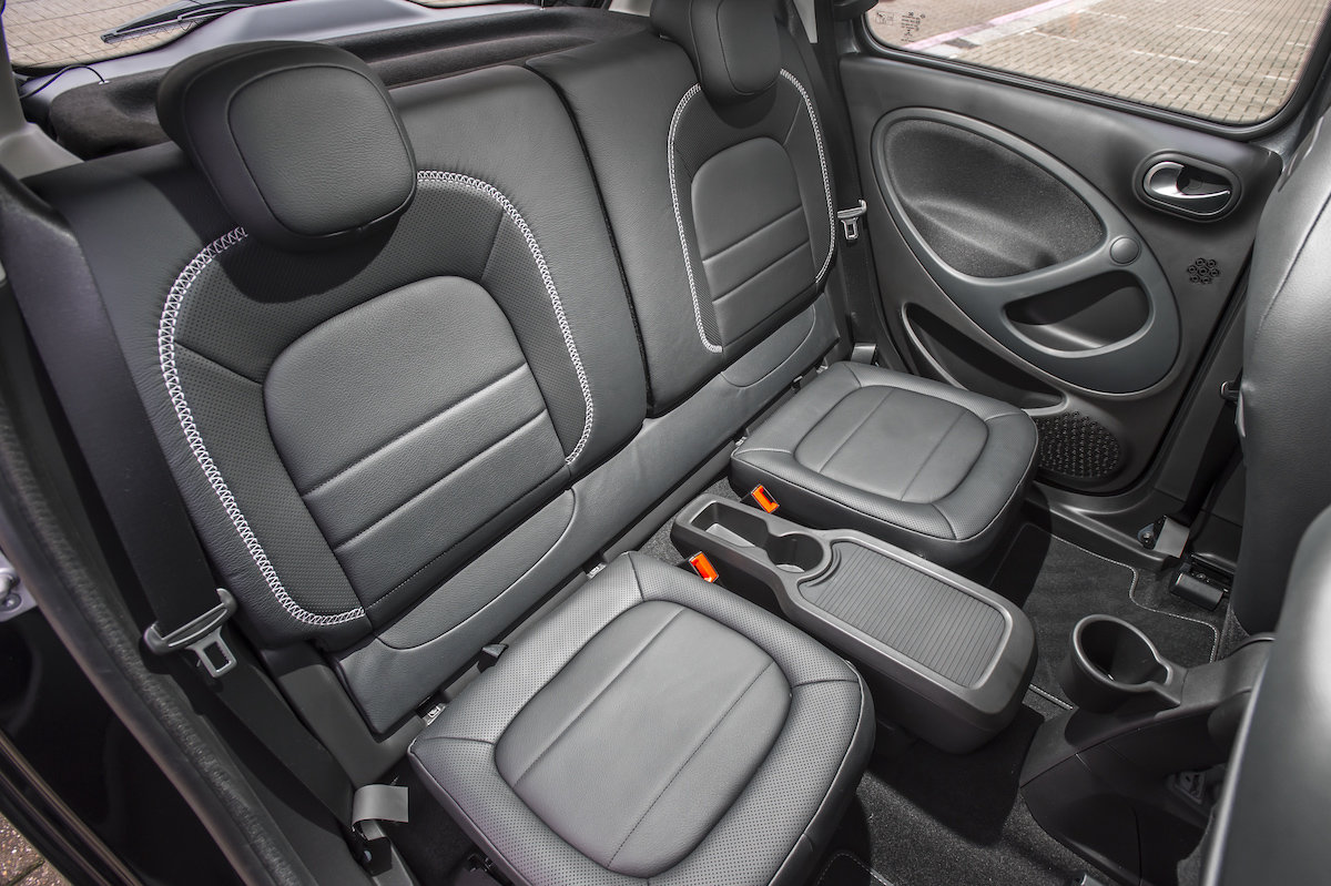 Inside, it’s definitely the most spacious Smart car money can buy but it’s still very small and to counter that, engineers at Smart came up with some very, ahem, smart ways of maximising interior space. The rear doors, for example, open to 85 degrees, making it much easier to climb in and out of the relatively cramped rear quarters. It’s also great if you have child seats to contend with and makes it much easier for children to clamber around.