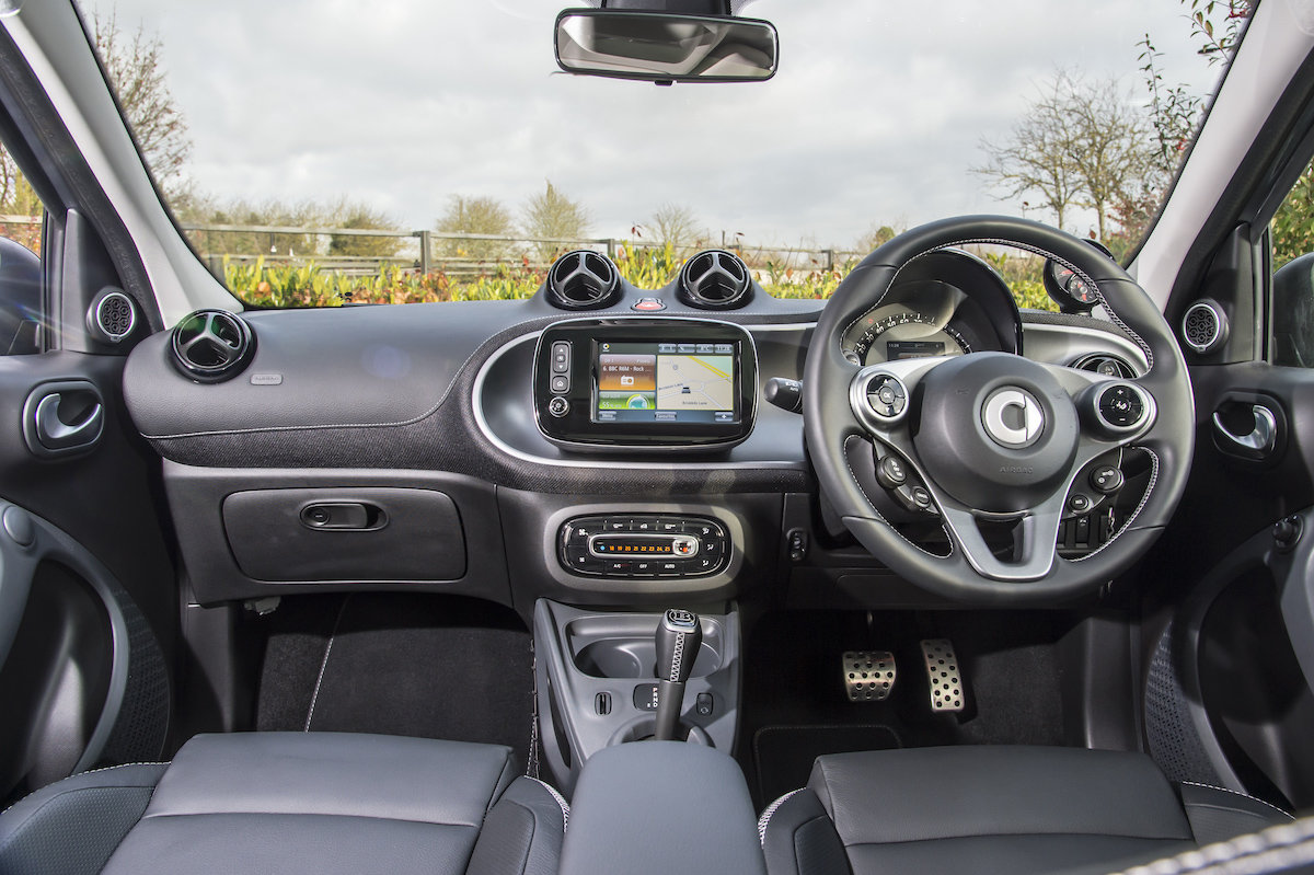 The general fit and finish of any Smart car is very good, with plenty of design flourishes that make it feel vibrant and, dare we say it, trendy inside. Hunt lower down in the cabin and you will find some cheaper plastics, but it’s otherwise fairly tactile, with vibrant contrasting colours to break up the typically drab blacks found in many rivals.