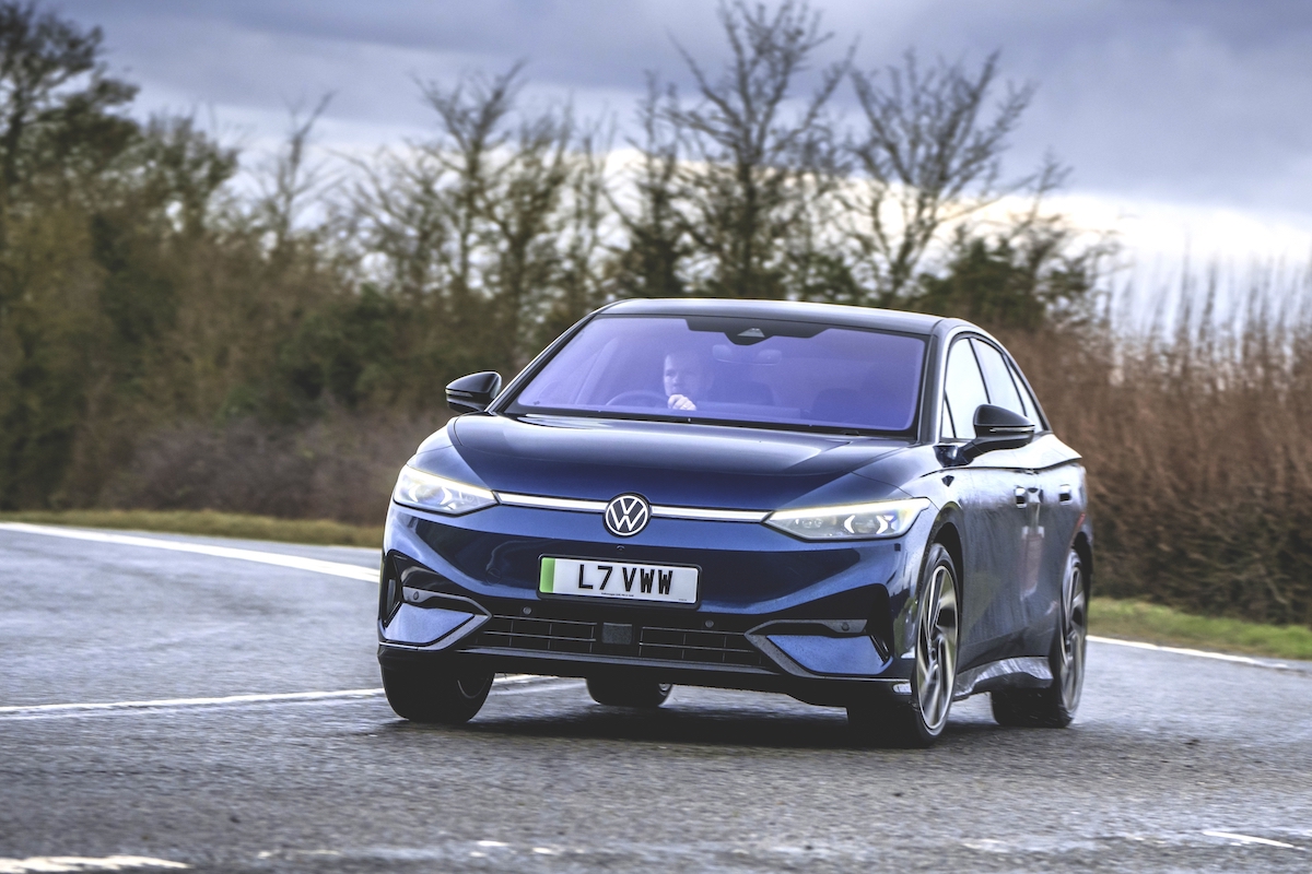 The slippery, aerodynamic shape of the VW ID.7 with its raked windscreen and flush panels is key to how it has achieved impressive efficiency, giving it a long range despite a comparatively small battery.