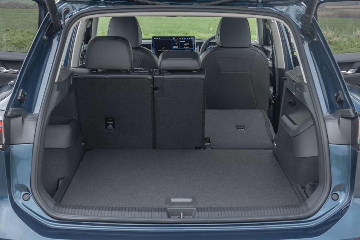Lift the tailgate (it's powered on mid-level Match trim and above), and you’ll find a square-shaped, flat-sided boot of a very generous 652 litres, dropping to 490 litres in the plug-in-hybrid versions. There’s a false floor - with a massive amount of concealed space underneath - that reduces the obstruction of the load lip at the entrance of the boot, and when you drop the 40/20/40 split-folding rear seats, it levels off the step up to the rear seatbacks as well. The dropping process involves pulling catches in the boot or tapes on the seats themselves, but the backrests don’t quite lay flat, so part of your extended load area is slightly sloped.